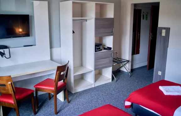 Obiekt dysponuje 130 miejscami noclegowymi w 50 pokojach jedno-, dwu- i trzyosobowych wyposażonych w dostęp do Internetu, TV, biurko oraz telefon.