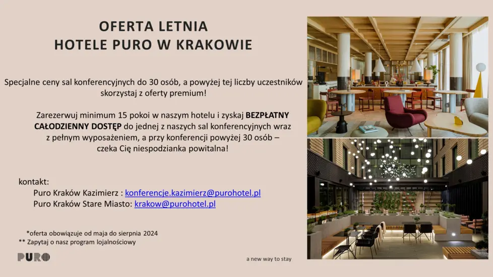 Konferencje.pl / Sale konferencyjne Małopolskie / Sale konferencyjne Kraków / Puro Kraków Kazimierz
