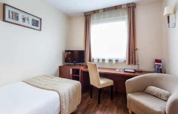 Trzygwiazdkowy hotel w centrum miasta, ze 143 miejscami noclegowymi, 2 salami konferencyjnymi i restauracją.
