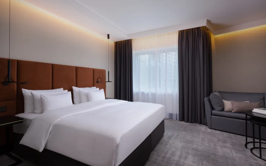Pokoje: 622 miejsca noclegowe w 309 pokojach typu Superior i Business Class oraz apartamentach.