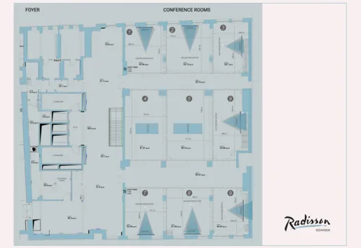 Sale konferencyjne: Radisson Hotel & Apartments Gdańsk oferuje także jedną z największych hotelowych przestrzeni konferencyjnych w mieście. Dziewięć sal o ruchomych ścianach oraz duże foyer można dowolnie zestawiać, uzyskując łącznie powierzchnię wielkości 1000 m2. Całość jest wyposażona w nowoczesny sprzęt konferencyjny, dzięki czemu Radisson Hotel & Apartments Gdańsk stanowi jedno z najbardziej atrakcyjnych miejsc organizacji wydarzeń na hotelowej mapie miasta.