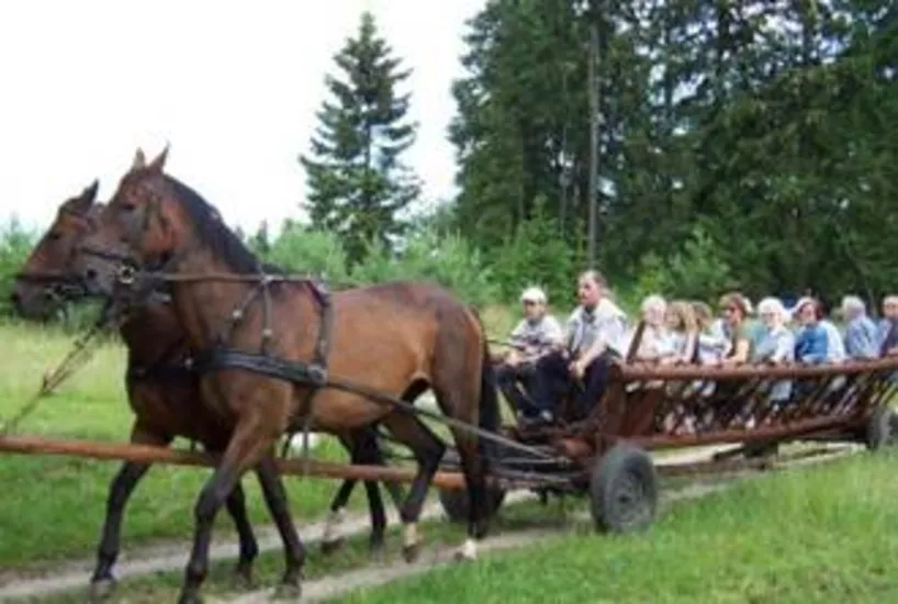 Architektura: Gospodarstwo agroturystyczne, na które składają się budynek główny, restauracja, domek Spanie na sianie oraz budynki gospodarskie.