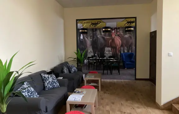 Oferujemy Państwu noclegi w bardzo komfortowych pokojach z TV sat. i łazienkami (z suszarkami do włosów) oraz niezwykle wygodnymi łóżkami kontynentalnymi, a także pyszne wyżywienie, bilard, saunę, siłownię, tenis stołowy, piłkarzyki, możliwość wędkowania w naszych stawach, chatę grillową oraz oczywiście jazdę konną (stajnia z kilkunastoma końmi na miejscu) zarówno na placu, jak i w terenie (w tym nad morze).