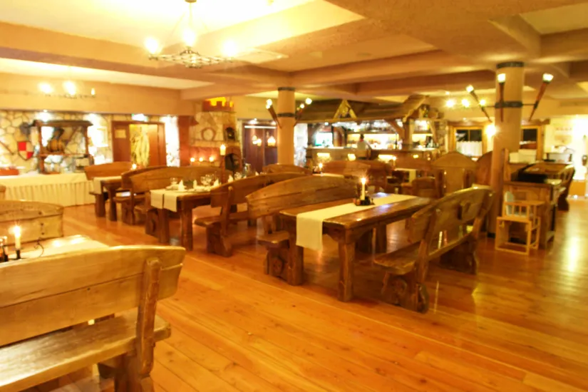 Restauracja Rycerska, znajdująca się w stylowym pomieszczeniu, nawiązującym do czasów średniowiecznych oraz tradycji. To miejsce wyjątkowe o niepowtarzalnym klimacie łączące w sobie wyszukane smaki napitków i jadła staropolskiego.