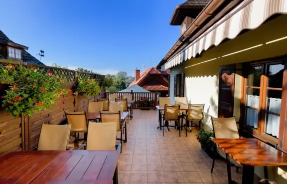 Gastronomia: restauracja specjalizuje się w kuchni polskiej i europejskiej. Z restauracji można wyjść do ogródka letniego dla 50 gości.