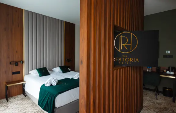 Restoria Hotel to nowoczesny obiekt usługowy. Posiadamy salę bankietową o powierzchni 520 m kw., która może zostać podzielona na 2 niezależne sale oraz salę konferencyjną o powierzchni 45 m kw. W naszym hotelu oraz w sąsiadującym naszym drugim obiekcie pomieścimy łącznie 84 osoby w pokojach 2-osobowych z możliwością dostawki.