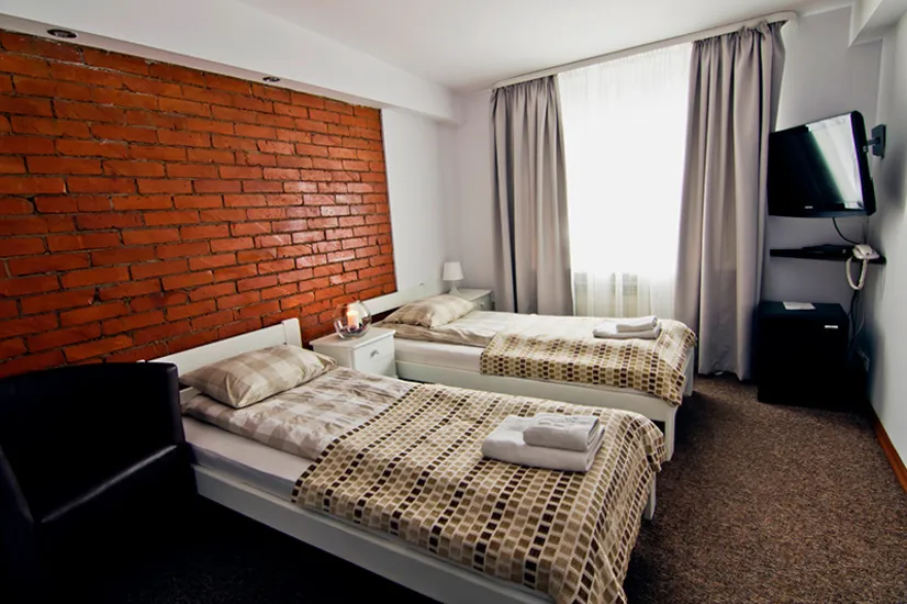 Noclegi: 68 miejsc noclegowych w 32 klimatyzowanych pokojach jedno-, dwu-, trzy- i czteroosobowych.