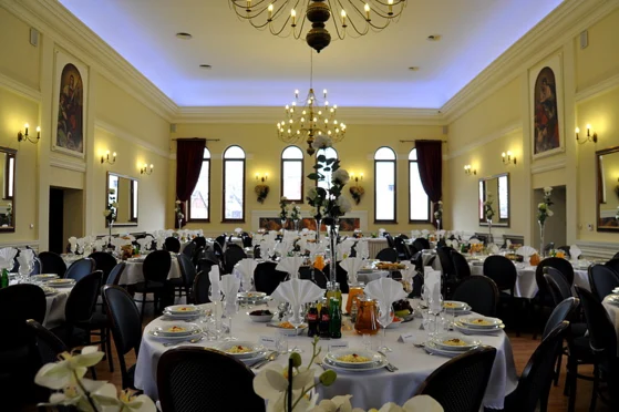 Sale konferencyjne: Sala bankietowa na przyjęcia zasiadane dla 150 osób oraz na 240 osób w układzie teatralnym.