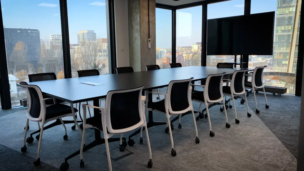 Otoczona z dwóch stron sala szkoleniowa z panoramicznymi oknami, które zapewniają doskonałe doświetlenie i przyjazną atmosferę. Sala dostosowana jest na wynajem na szkolenia do 27 osób w zależności od preferowanego układu.