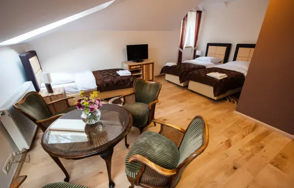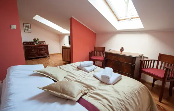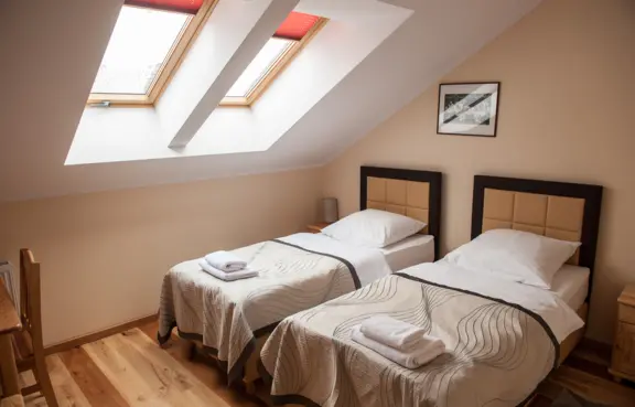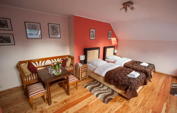 Oferujemy zakwaterowanie w przestronnych pokojach o wysokim standardzie. Każdy z nich posiada drewnianą podłogę, stylowe meble oraz wygodne łóżka. Każdy z pokoi ma dostęp do Internetu oraz 32 calowy telewizor LCD.