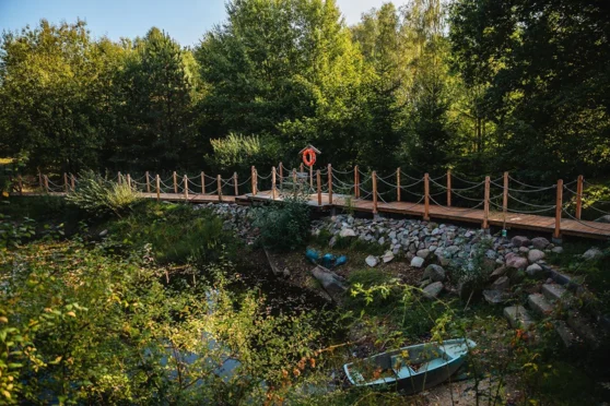 Dom Wakacyjny to wolnostojący dom wynajmowany jako cały budynek o powierzchni 200 m2 z 4 sypialniami dla 9 osób, dużym salonem z TV oraz kuchnią. Gospodarze mieszkają na miejscu, ale korzystają z osobnego wejścia. Kuchnia w Domu Wakacyjnym jest współdzielona przez Gości i Gospodarzy.