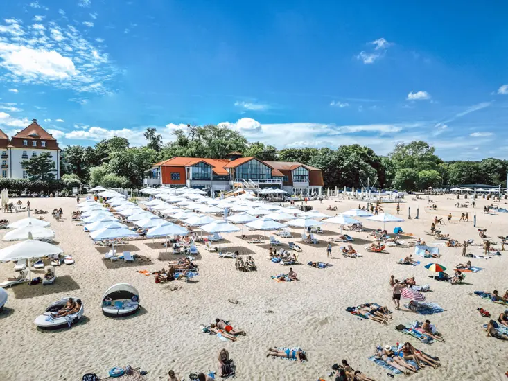 Obiekt posiada prywatną plażę o powierzchni 3000 m² z leżakami i parasolami. W okresie letnim obiekt posiada 2 tarasy na plaży, Beach Bar oraz Fish Bar.