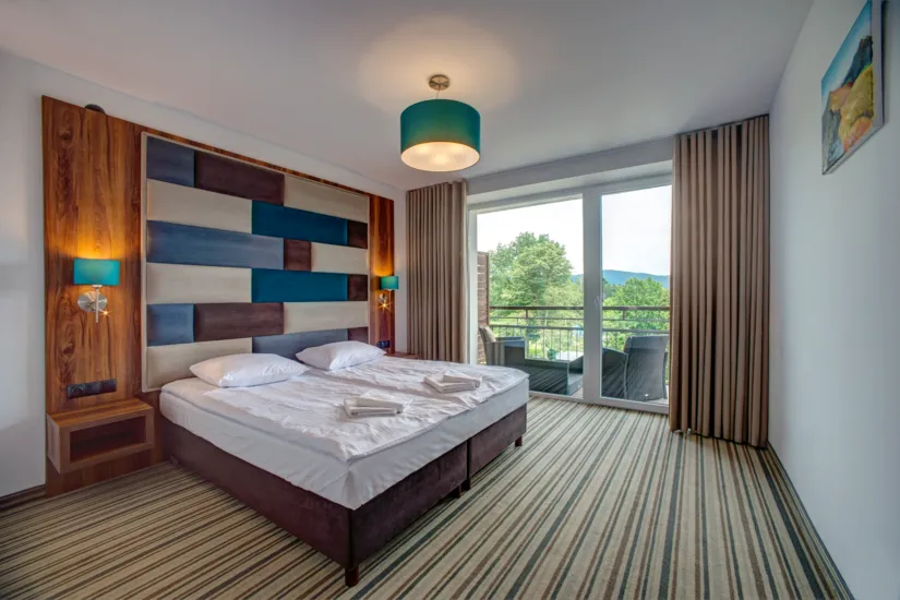 – 16 pokoi dwuosobowych typu Deluxe z balkonem,
