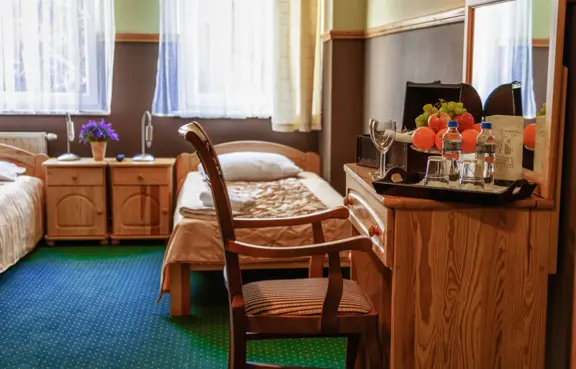 Do dyspozycji naszych gości oddajemy 12 komfortowych oraz przytulnie urządzonych pokoi, w tym pokoje jedno, dwu oraz trzyosobowe. Wszystkie pokoje posiadają łazienkę z prysznicem, istnieje również możliwość dostawki.