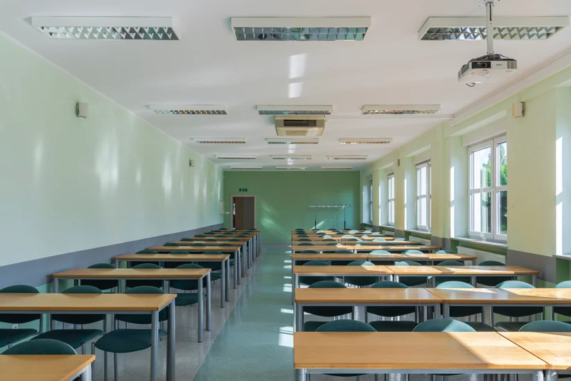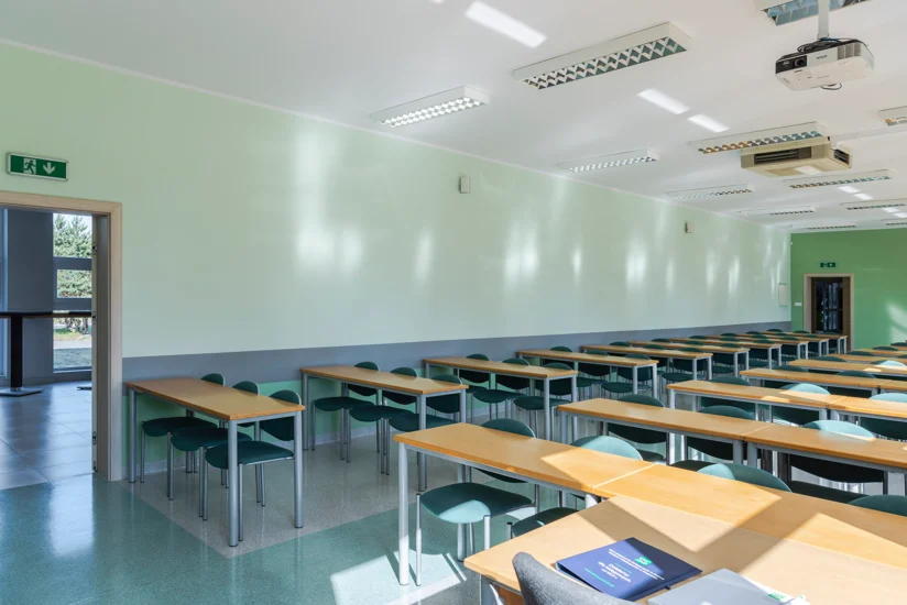 Przestronna sala wyposażona w dwa wejścia. Możliwość dowolnego ustawienia sali. Dodatkowo można wyposażyć sale w tablicę multimedialną.