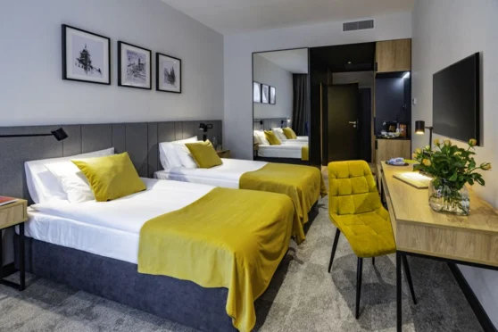 Pokoje: hotel oferuje 52 nowe i doskonale wyposażone pokoje hotelowe, w tym 39 pokoi typu Standard, 12 Superior i 1 apartament, stworzone z myślą o zapewnieniu gościom niezapomnianego wypoczynku. Każdy pokój został starannie urządzony, aby zapewnić najwyższy poziom komfortu i relaksu.