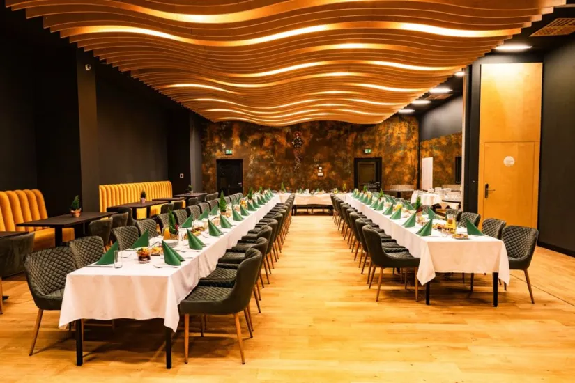 Sale konferencyjne: Hotel Sante oferuje 2 nowoczesne sale konferencyjne o powierzchni 60 m kw. i 55 m kw.. Większa z przestrzeni pomieści do 40 osób, w mniejszej zaś za stołem konferencyjnym zasiąść może 20 osób. W celu zapewnienia jakości wizualnej, sale konferencyjne są wyposażone w dwa ekrany Samsung QM75B o rozdzielczości UHD (4K), które gwarantują wyraziste i szczegółowe obrazy. Dodatkowo, zestaw wideokonferencyjny Logitech Rally Bar oraz kamera o rozdzielczości 4K z inteligentną funkcją podążania za prelegentem i automatycznym kadrowaniem, umożliwiają płynne i wysokiej jakości wideokonferencje.