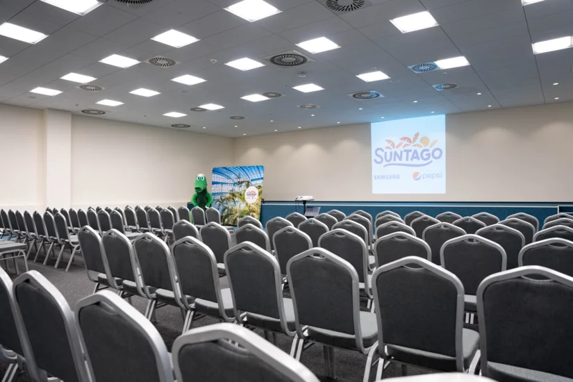 Sala o powierzchni 550 m2 posiada oddzielne wejście oraz pełne zaplecze sali konferencyjnej z pięknym i przestrzennym foyer. Sala przy ustawieniu teatralnym pomieści 400 osób. Jest klimatyzowana.