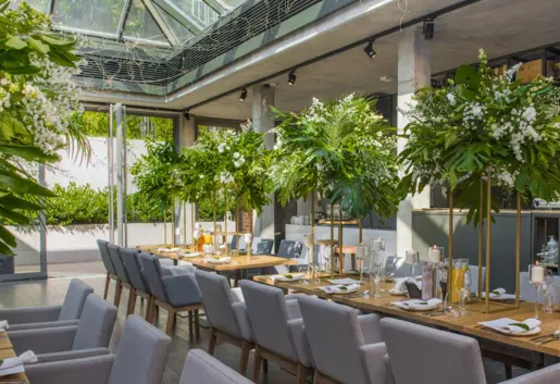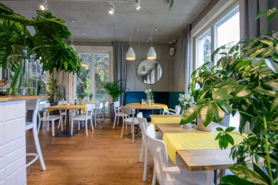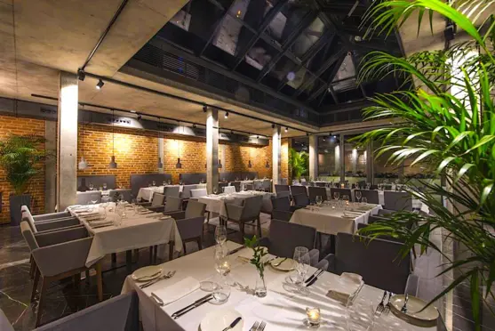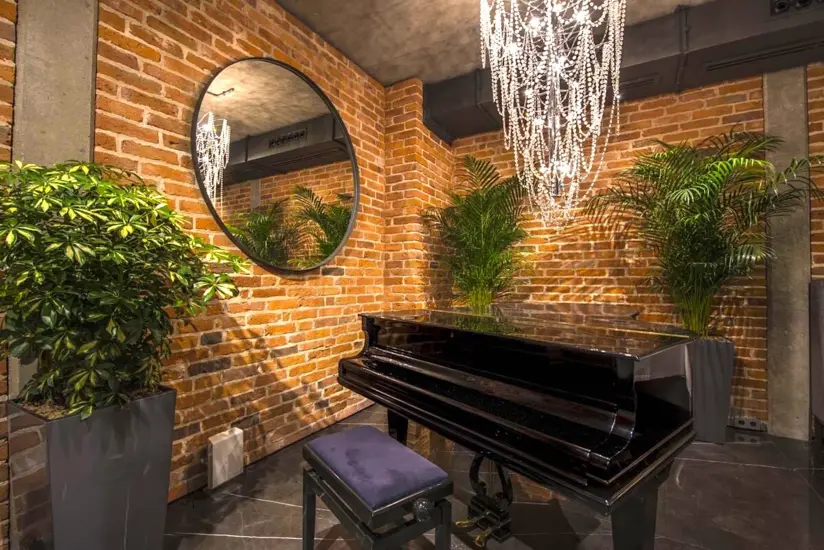 Pierwszy poziom, to część restauracji, która idealnie wpisuje się wystrojem do każdej okazji. Dużo zieleni, odpowiednio nakryte i udekorowane stoły, wygodne fotele. Jednym słowem urocze, klimatyczne miejsce, gdzie na pewno nasi Goście będą czuli się swobodnie. Przeszklony świetlik oraz ustawiony w centralnej części sali pod kryształowym żyrandolem fortepian również dodaje uroku całemu wnętrzu.