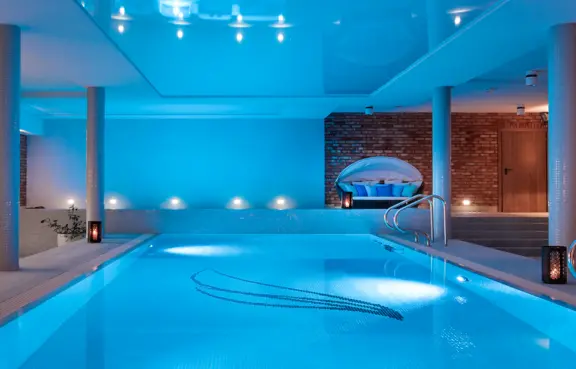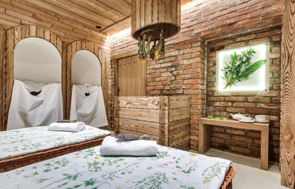 Strefa SPA& Wellness: basen z podwodną muzyką, jacuzzi, sauny, łaźnia parowo-błotna, siłownia, masaże, zabiegi, rozległy teren.