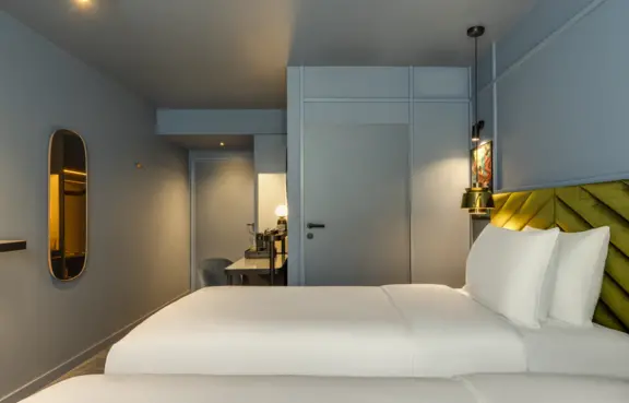 Uważamy, że głównym zadaniem pokoju hotelowego jest zapewnienie możliwości spokojnego odpoczynku i komfortowego snu. Dlatego stawiamy na prostotę, którą dopełniamy wystrojem wnętrz na światowym poziomie. No i dorzucamy kilka szałowych dodatków… Niebywale wygodne autorskie łóżka TRIBE, luksusowe wyposażenie i doskonałe łazienki.