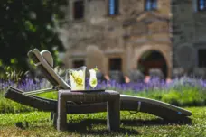 Architektura: XVI-wieczny zamek renesansowy po renowacji, urządzony wewnątrz w nowoczesnym stylu, otoczony parkiem.