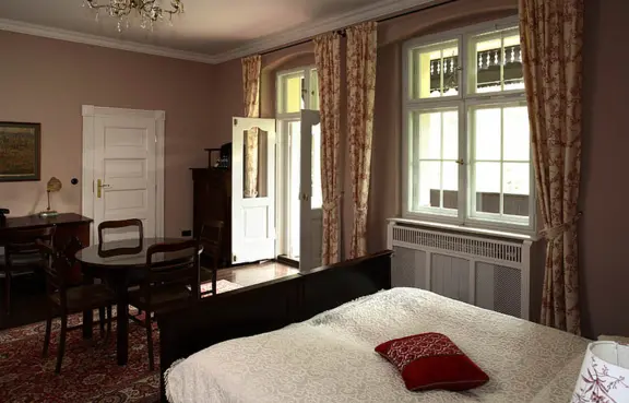 Do Państwa dyspozycji oddajemy dwadzieścia dwuosobowych pokoi z łazienkami (dwanaście w Villi Pepita i osiem w Villi Titina) urządzonych meblami z epoki, wyposażonych w stały dostęp do internetu, TV satelitarną oraz telefon. Wykorzystując dostawki w pokojach możemy w obu domach przyjąć jednocześnie do 56 osób. Do dyspozycji oddajemy również w Villi Pepita salę balową, salę kominkową, bar, jadalnię, salę bilardową połączoną z biblioteką (dostępne dla gości Villi Titina w miarę możliwości) oraz mini SPA (sauna sucha, mokra i jacuzzi), a także hammam (łaźnia turecka - za dodatkową opłatą). W Villi Titina goście mają do dyspozycji dwa stylowe saloniki z aneksami kuchennymi. Na życzenie aranżujemy salę konferencyjną w jednym z pomieszczeń Villi Pepita.