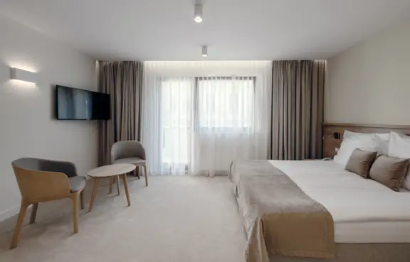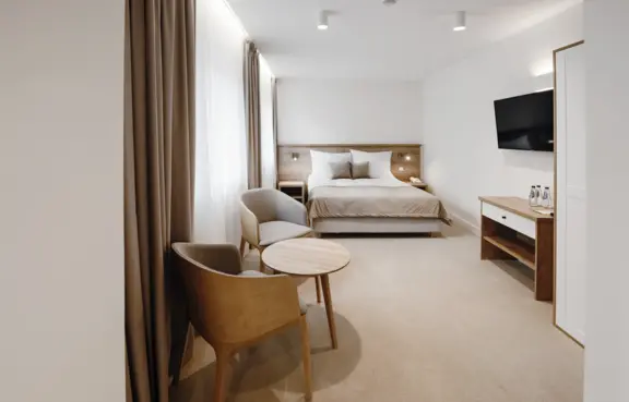 Sala konferencyjna w obiekcie "W Sercu Krakowa Aparthotel" to nowoczesne i eleganckie miejsce stworzone z myślą o organizacji różnego rodzaju wydarzeń biznesowych, takich jak szkolenia, warsztaty, spotkania firmowe czy prezentacje. Przestrzeń jest klimatyzowana i wyposażona w zaawansowany sprzęt audiowizualny, w tym system nagłośnienia, rzutnik multimedialny, ekran projekcyjny, co pozwala na profesjonalne przeprowadzenie każdego wydarzenia. Sala oferuje również szybki dostęp do bezprzewodowego Internetu Wi-Fi. Pomieszczenie może komfortowo pomieścić do 35 osób, a jego ustawienie można dostosować do potrzeb gości. Na życzenie organizatorów obiekt zapewnia przerwy kawowe oraz posiłki dla uczestników, dzięki czemu spotkania mogą odbywać się w przyjaznej i komfortowej atmosferze. Dogodna lokalizacja w centrum Krakowa czyni tę salę atrakcyjnym miejscem na wydarzenia biznesowe w sercu miasta.