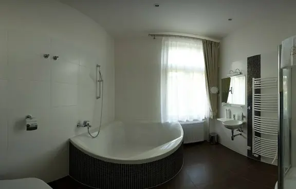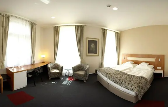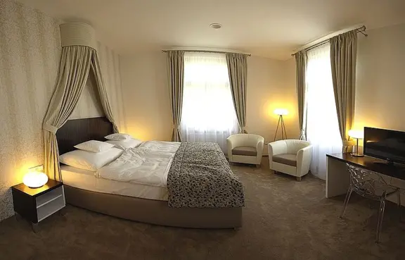 Pokoje: 12 pokoi dwuosobowych, w tym 1 deluxe (wanna rogowa, widok na park), 2 pokoje komfort (widok na park), 9 pokoi standard. Pokoje wyposażone w TV LED, wi-fi, minibarek, lodówkę, suszarkę do włosów.