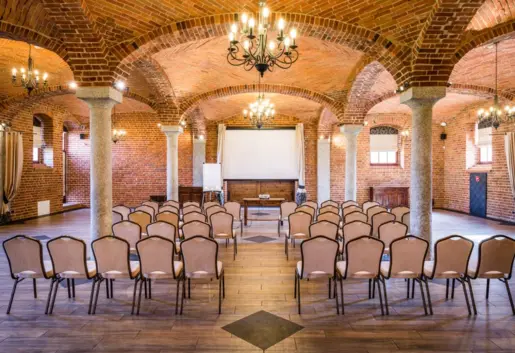 Sala Kominkowa – sala konferencyjna o powierzchni 200 m² w Zamek Topacz Resort & Art SPA w miejscowości Ślęza.