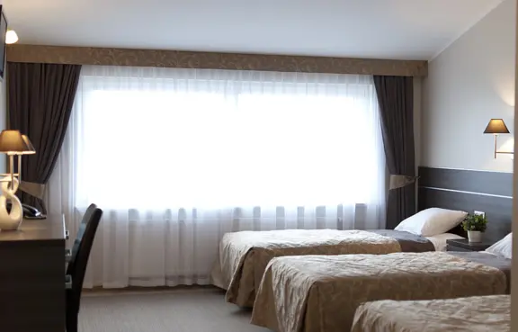 Trzygwiazdkowy hotel z zapleczem noclegowym, konferencyjnym oraz restauracją.